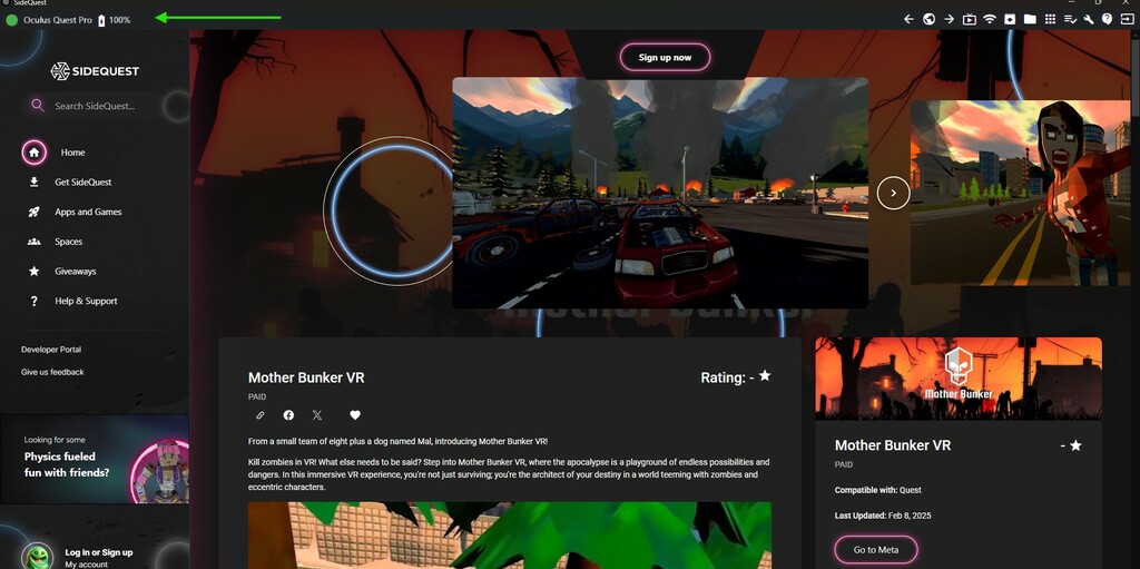 SideQuest is a third-party platform for discovering and installing virtual reality apps and games. Visit the SideQuest website, download, and install the application. Ensure your device is connected and recognized by the app before proceeding. This step is essential to ensure your app functions independently of your local Unity project before publishing it on Meta Quest.