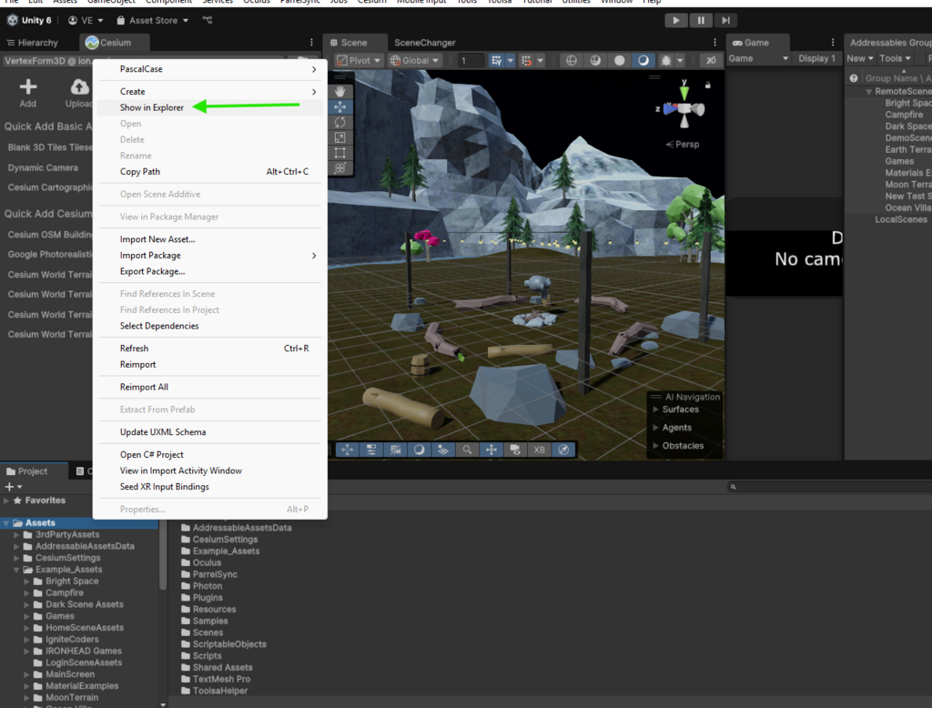 Once the project is open, navigate to the Scenes folder under Vertex Form 3D Scenes and locate the example scene LoginScene.