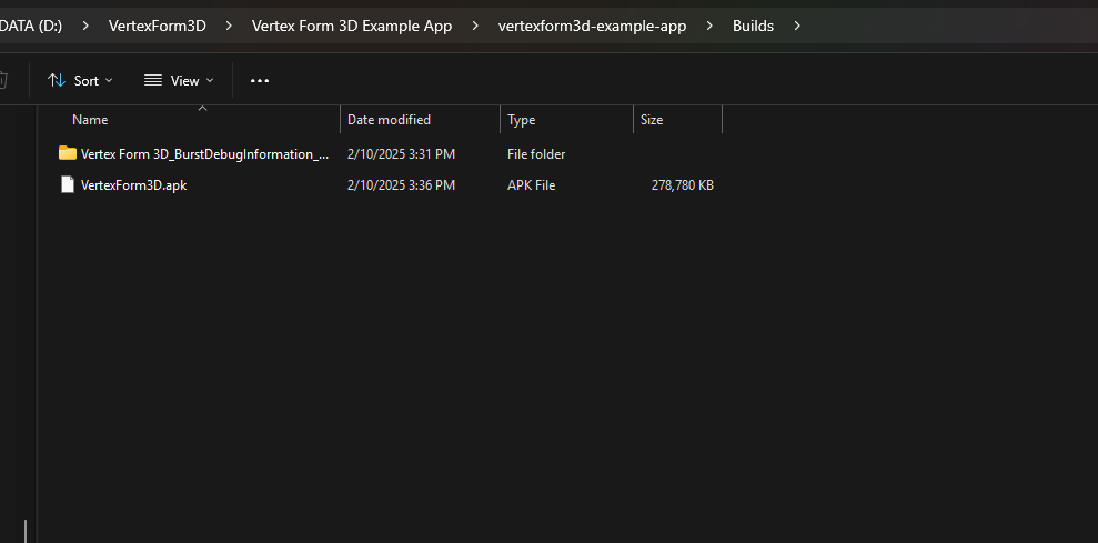 Confirm that your apk was successfully created by navigating to the Builds folder.